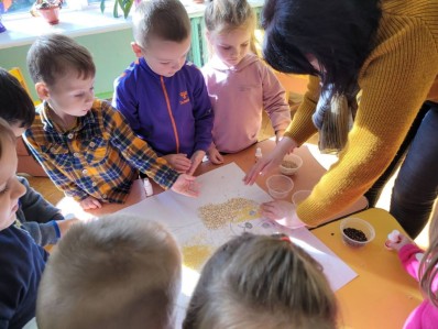 Діти ознайомилися з етапами розвитку рослин,із задоволенням висівали насіння пшениці, ячменю,квасолі, моркви, висаджували цибулю та часник.